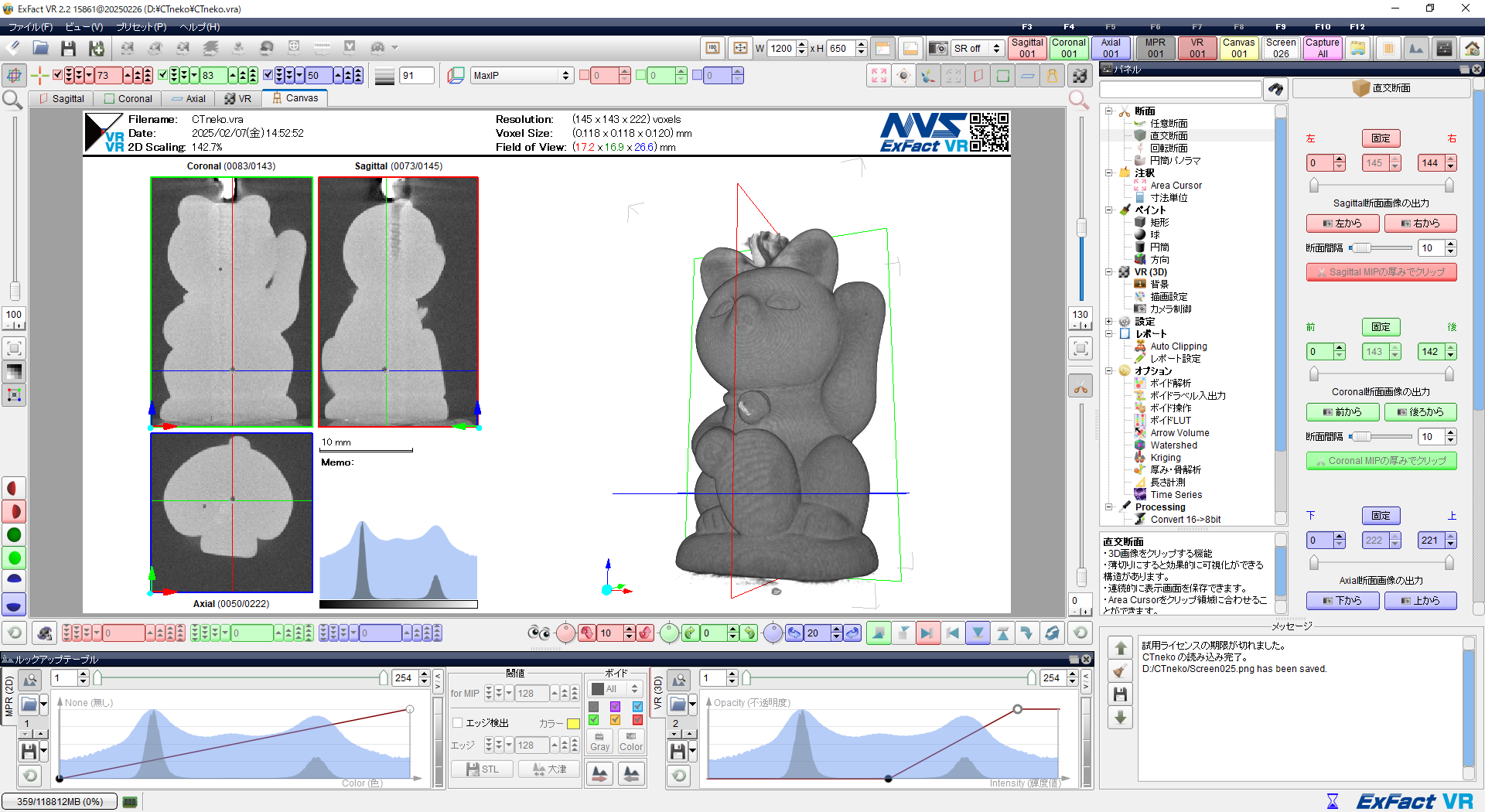 - 断面画像と立体画像、付加情報の対応関係がわかりやすくレイアウトされた画面構成。