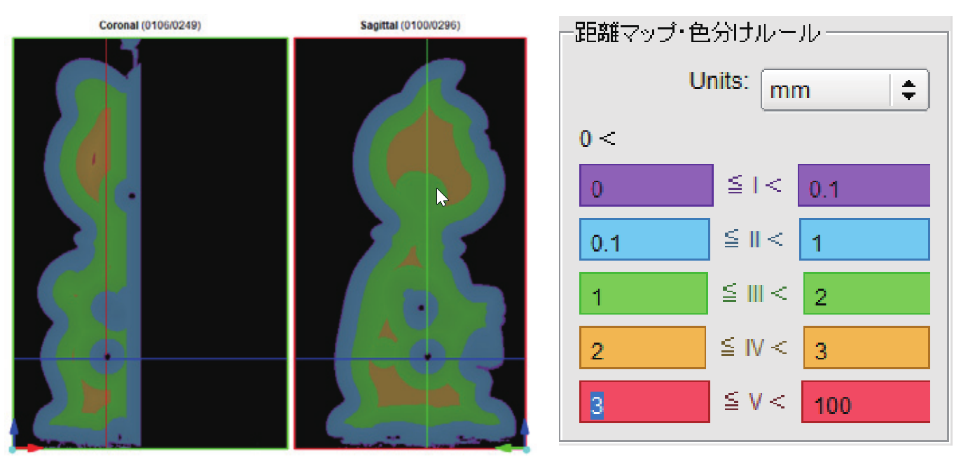 - 3D 画像のマテリアル/空隙について厚み情報を算出、同時にDistance Map と呼ばれるエッジからの距離を求めて可視化、数値化できるソフトウエア「ExFact®VR」に別売りで機能追加できるオプション製品です。
