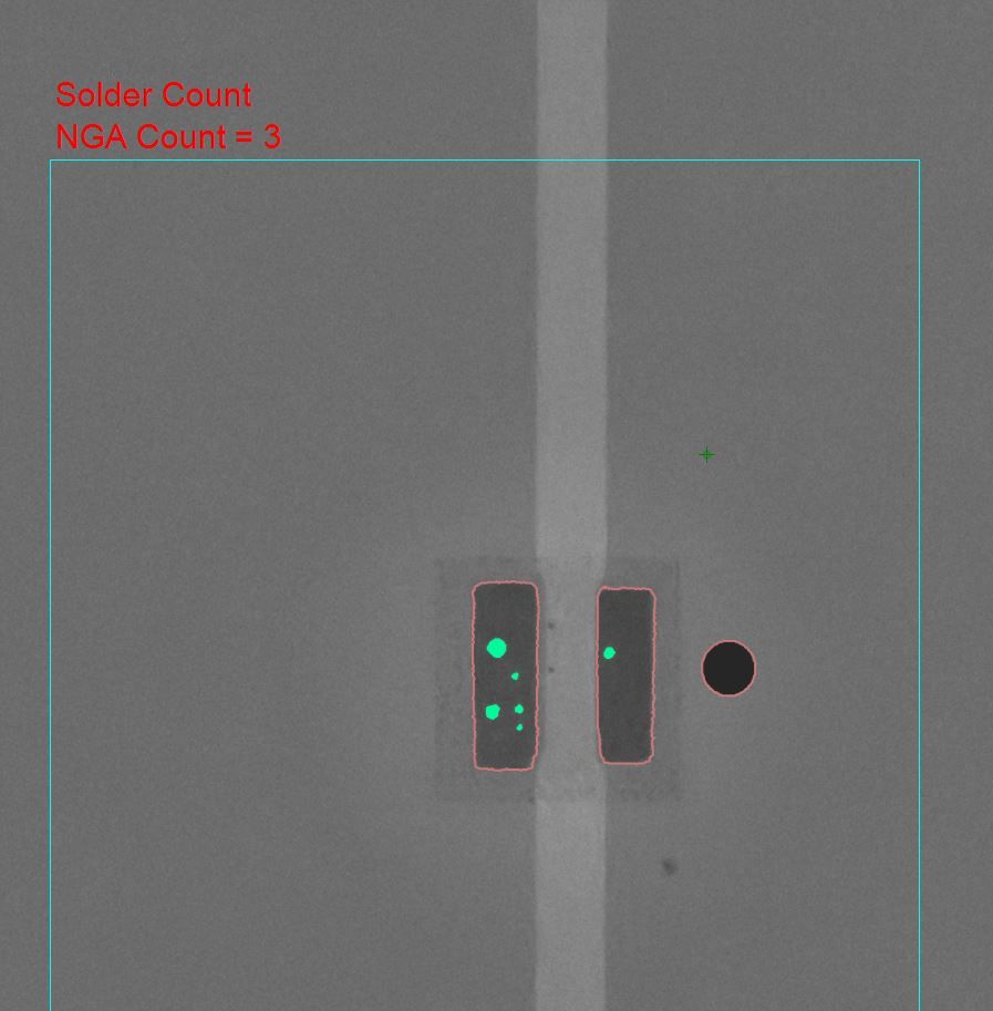 オブジェクトの固定パターンを認識し、Child GA ROI(子領域)を生成して、 オブジェクトおよび内部の欠陥を検査するツール。 ショート、過鉛、少鉛、位置ずれ、角度、ボイド欠陥などの検出が可能。 |